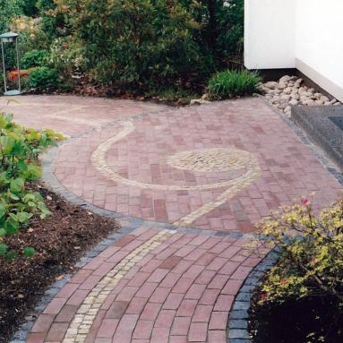 Wege: Klinker, Mosaik-Pflaster Quarzit